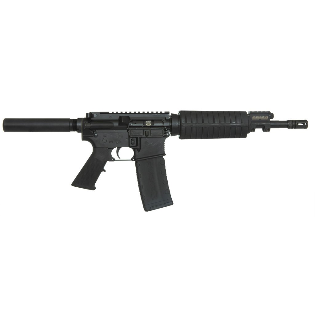 The Adams Arms P1 pistol features M4 handguard, with a 4150 Chrome Moly Vanadium Steel barrel material sealed in a QPQ Melonite/black nitride finish. This pistol features A2 flash hider muzzle device and a carbine, short stroke piston operated gas system. It is built with an Picatinny railed gas block with 3 adjustable settings and an A2 grip .