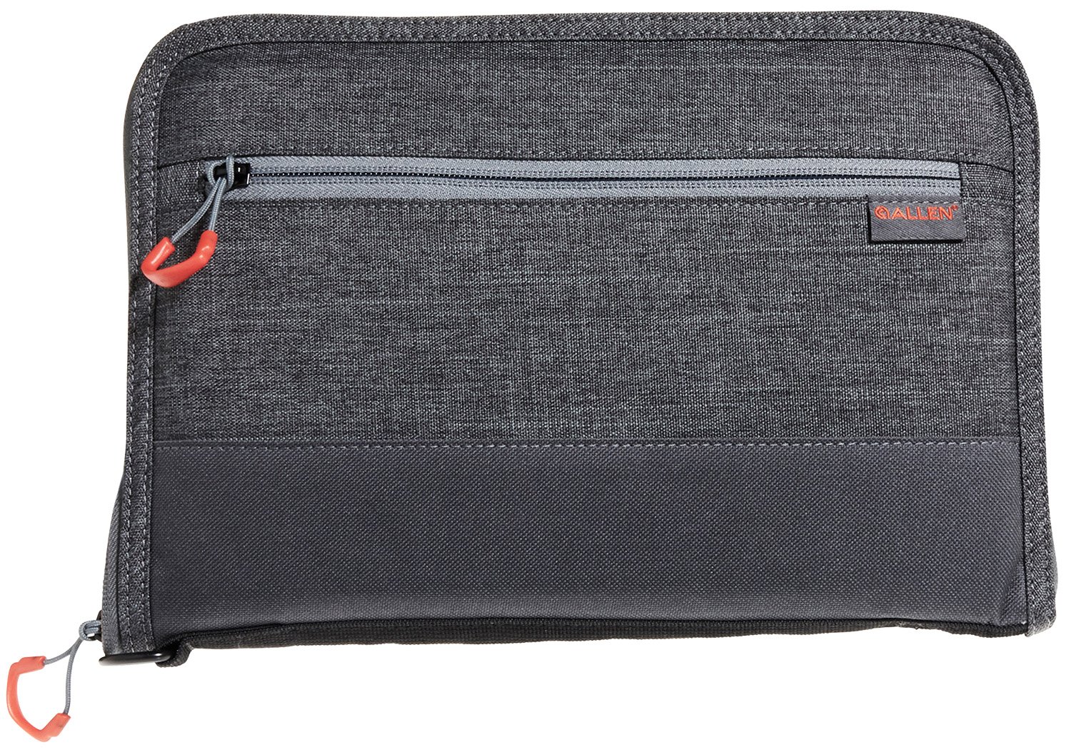 For those needing a soft handgun case that offers excellent protection and has a discreet design, the Auto-Fit 2.0 case by Allen is your best choice. This case will protect most full-size, semi-auto handguns and some revolvers up to 11-inches. It is made with thick padding, soft knit lining, and an external pocket to store cleaning accessories or an extra magazine. The Auto-Fit 2.0 case comes with a hang tab on the rear of the case so you can hang it up when it is not in use. The metal D-ring on the spine of the case works great for using a small lock to secure the case closed.