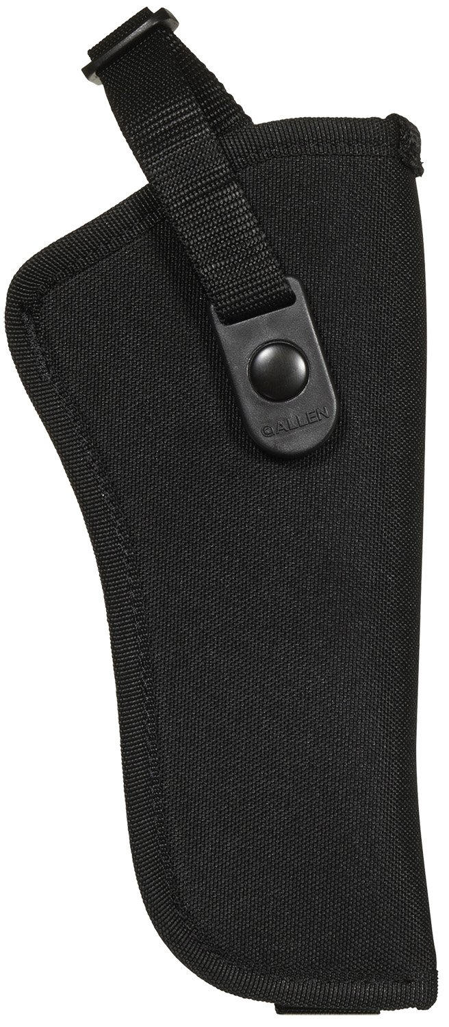 The Allen Company Cortez Handgun Holster provides a lightweight, rugged exterior, designed for right-handed shooters. Snag-proof lining, with a web sight guard, helps you with faster draw speeds while the molded belt loop fits belts up to 2-inches wide. Keep your firearm secure when not in use, ready when you are, with an adjustable strap. This model is compatible with 6-inch barrel, double action revolvers with full lug, and other makes/models of similar size.