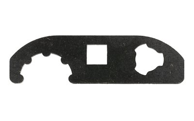 Two sided tool provides a 3-Lug wrench for installation and removal of 9mm 3-lug muzzle devices and the Angstadt Arms QD blast shield.