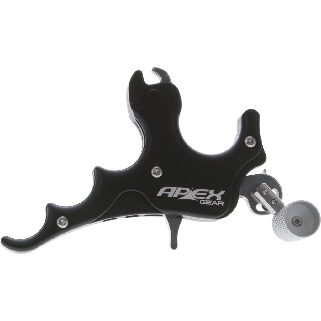 The Apex Gear Surge is an ambidextrous release with finger bed grooves for enhanced grip and control. The thin head and jaw structure are designed to reduce torque on a D-loop, while the latching jaw keeps the release locked in place while you wait for release. Other features include a lightweight, CNC-machined aluminum case, stainless steel mechanics, multi-position thumb barrel and individual travel and sensitivity adjustments.