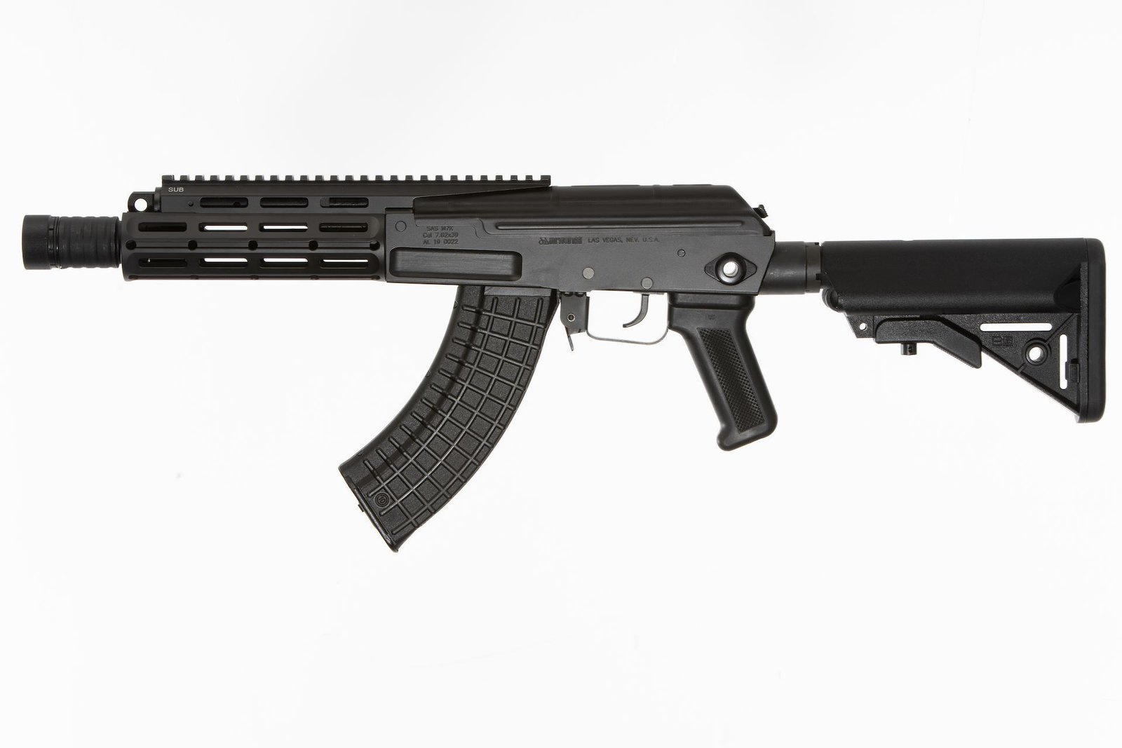 Arsenal AK-20 SASM7K SBR 7.62x39mm 8.5″ Barrel with Gas Adjuster Picatinny Top Rail Aluminum Hand Guard AR-15 Type Telescoping Stock and 30rd magazine.