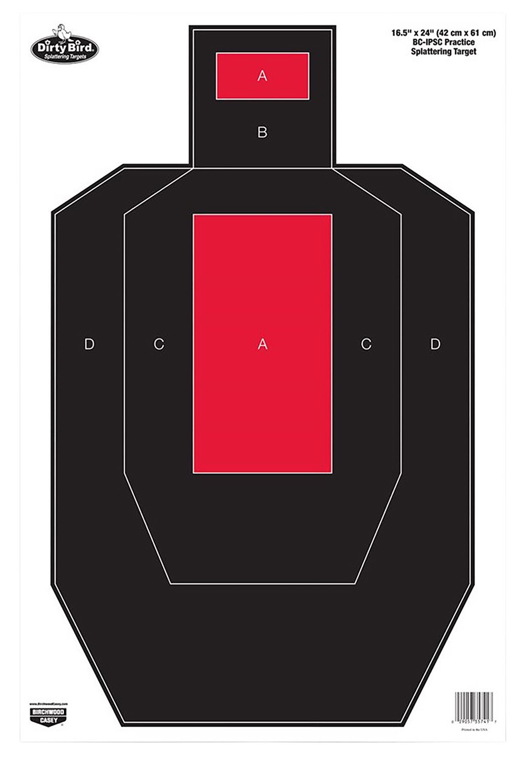 Birchwood Casey 35743 Dirty Bird IPSC Tagboard Hanging Pistol 16.50″ x 24″ Black/Red White Impact Splatter 3 Per Pkg
