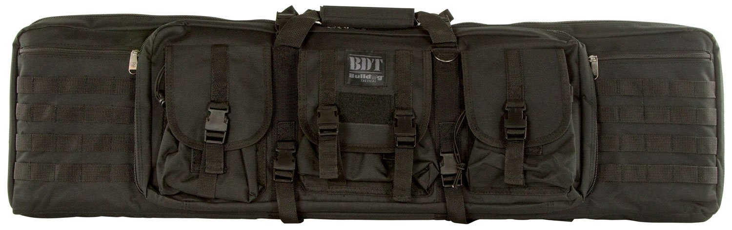 Bulldog’s BDT Tactical Rifle Case features a lockable zippered rifle compartment with adjustable Velcro tie downs and quilted lining. It is constructed of a heavy-duty nylon with oversized metal zippers and pulls, deluxe padded backpack straps, and three high-vis lined accessory pockets for added visibility. The case also has a lockable zippered accessory and extra magazine compartment.
