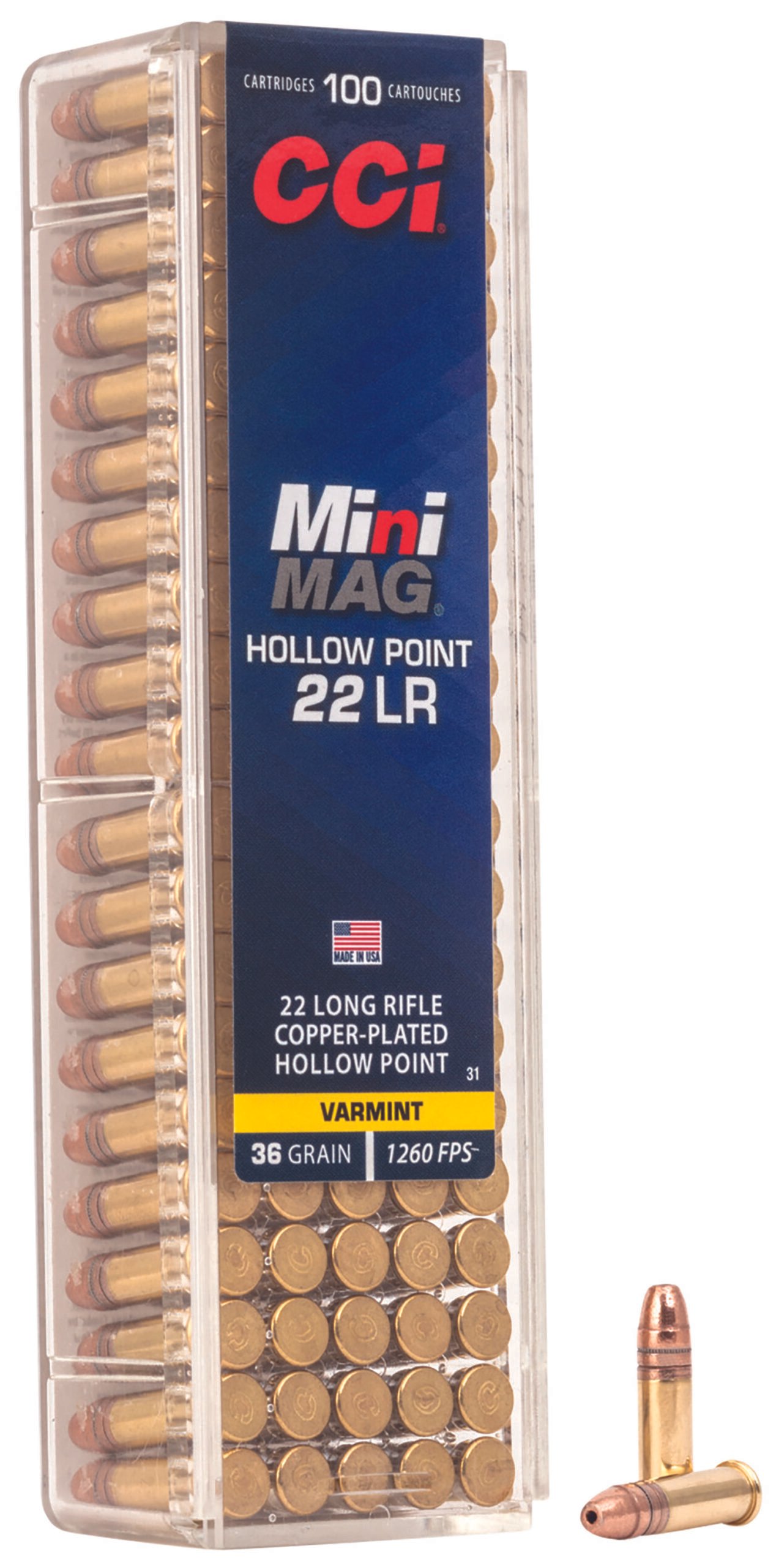 CCI 0031 Mini-Mag High Velocity 22LR 36gr Copper Plated Hollow Point 100 Per Box/50 Case