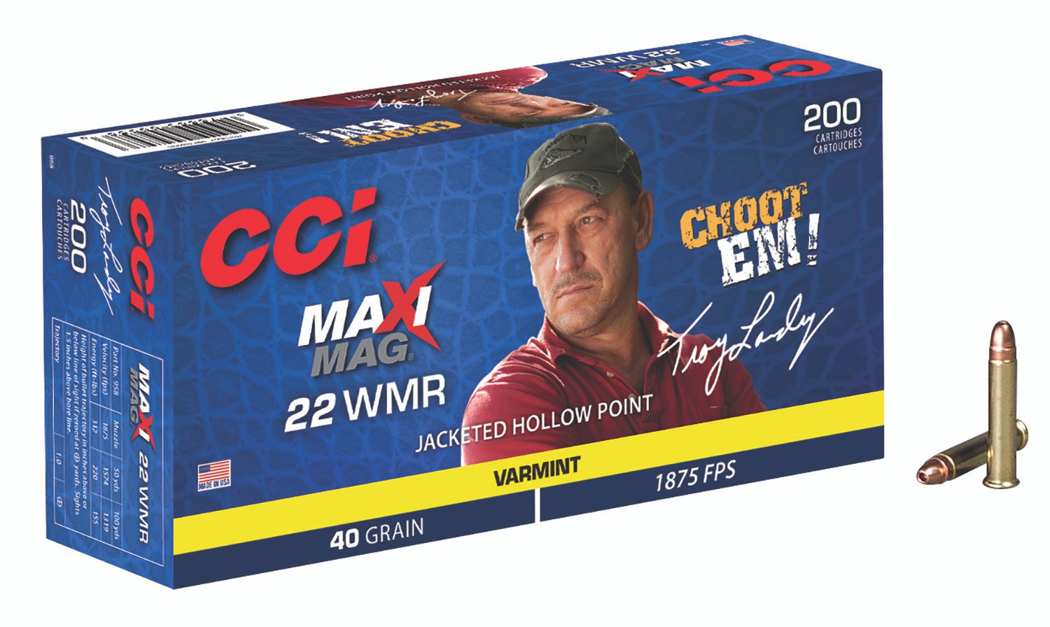 CCI 958 Maxi-Mag Varmint 22WMR 40gr Jacketed Hollow Point 200 Per Box/10 Case