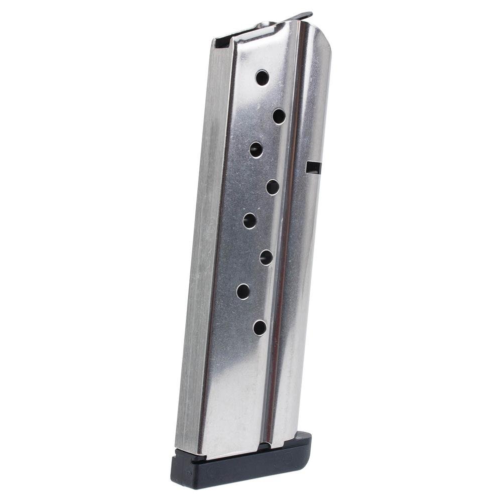 Check-Mate Full Size 1911 9 Round .38 Super Magazine Stainless. Manufactured from durable steel this magazine is designed by Check-Mate Industries for full-size 1911 pistol platforms chambered in .38 Super. This magazine features a polished stainless finish and boasts a capacity of 9 rounds of .38 Super cartridges. Each Check-Mate magazine is 100% developed and manufactured in the U.S.A. to ensure superior performance reliability quality fit and finish with your favorite firearm.