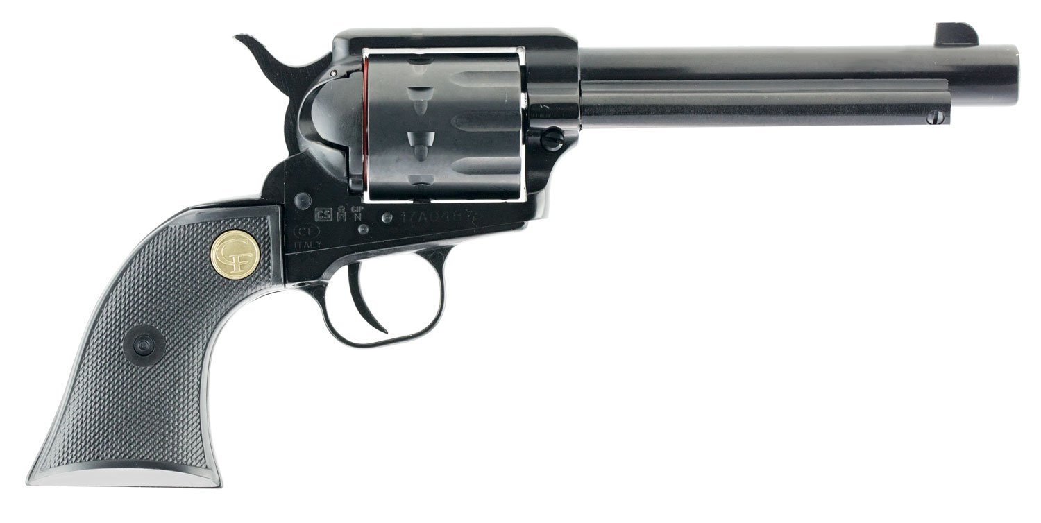 The single action 1873 is a timeless handgun and a symbol of the American West. The Chiappa SAA 1873 series captures the spirit and allure of these fine revolvers. Chambered in easy to shoot, readily accessible rimfire ammunition the SAA 1873 is an excellent single action revolver. Perfect for plinking, target practicing and even small game hunting. This model includes dual cylinders providing the ability to change back and forth between 22LR and 22WMR. Features black plastic grips; fixed front sight and no safety.