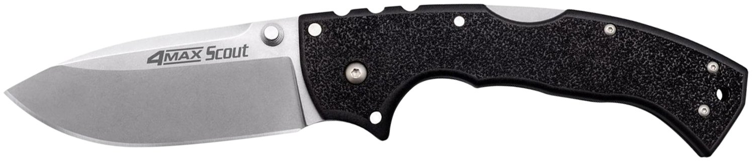 The 4-Max Scout features an extra wide, drop point blade and stonewash finish, which is identical to the original 4 Max. It’s crafted from AUS-10A steel, for strength, toughness and edge holding potential. The 4-Max Scout handle is made of Griv-Ex with stainless steel liners and a Griv-Ex back spacer. Equipped with the Tri-Ad locking mechanism the 4-Max Scout has passed every one of our grueling shock and impact tests and then gone on to hold 600 lbs. of free hanging weight with no damage.