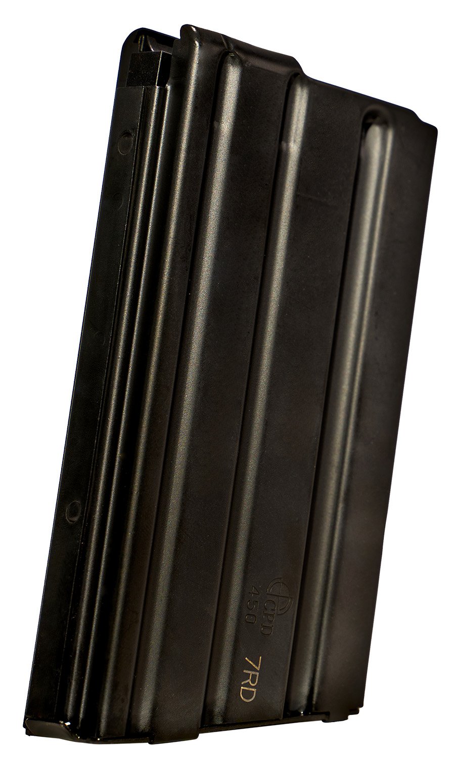This is a 7-round steel magazine chambered in .450 Bushmaster. Duramag magazines are made from a single piece of laser-welded 410 Stainless Steel and protected with T-360- applied coating. This is a magazine that can truly withstand the test of time and hard use. C Products Defense took great care to design this magazine to be the best option for precision shooters but also for heavy full-auto use. Precision shooters will enjoy an incredible amount of load length for their long-range shooting while knowing that their magazine will also feed as fast as needed, every time.
