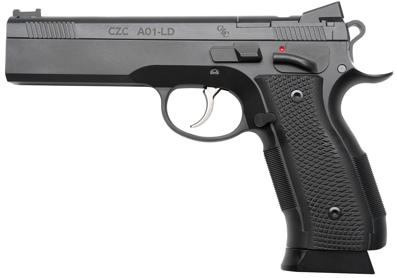 the CZC A01 short dustcover 9mm Luger, Iron sights, RDS Optic Cut, Iron Sight Plate, custom trigger job, Short Reset and G10 grips. The CZ Custom A01 is the evolution of the Shadow series, it combines classic CZ 75 ergonomics with purpose driven features ideal for competition. The frame is hammer-forged, CNC-machined and then blued. Featuring long dustcover, deep beavertail, undercut trigger guard, raised 25 LPI checkering and an internal magwell, RDS optic cut slide, Iron sights and sight plate, both the hammer and the sear are directly pinned in the frame to solidify trigger pull consistency, a short reset and a match-grade bull barrel. Built for the higher capacity P-09/P-07/P-10 magazine platform. Includes two 19rd P-09 magazines.