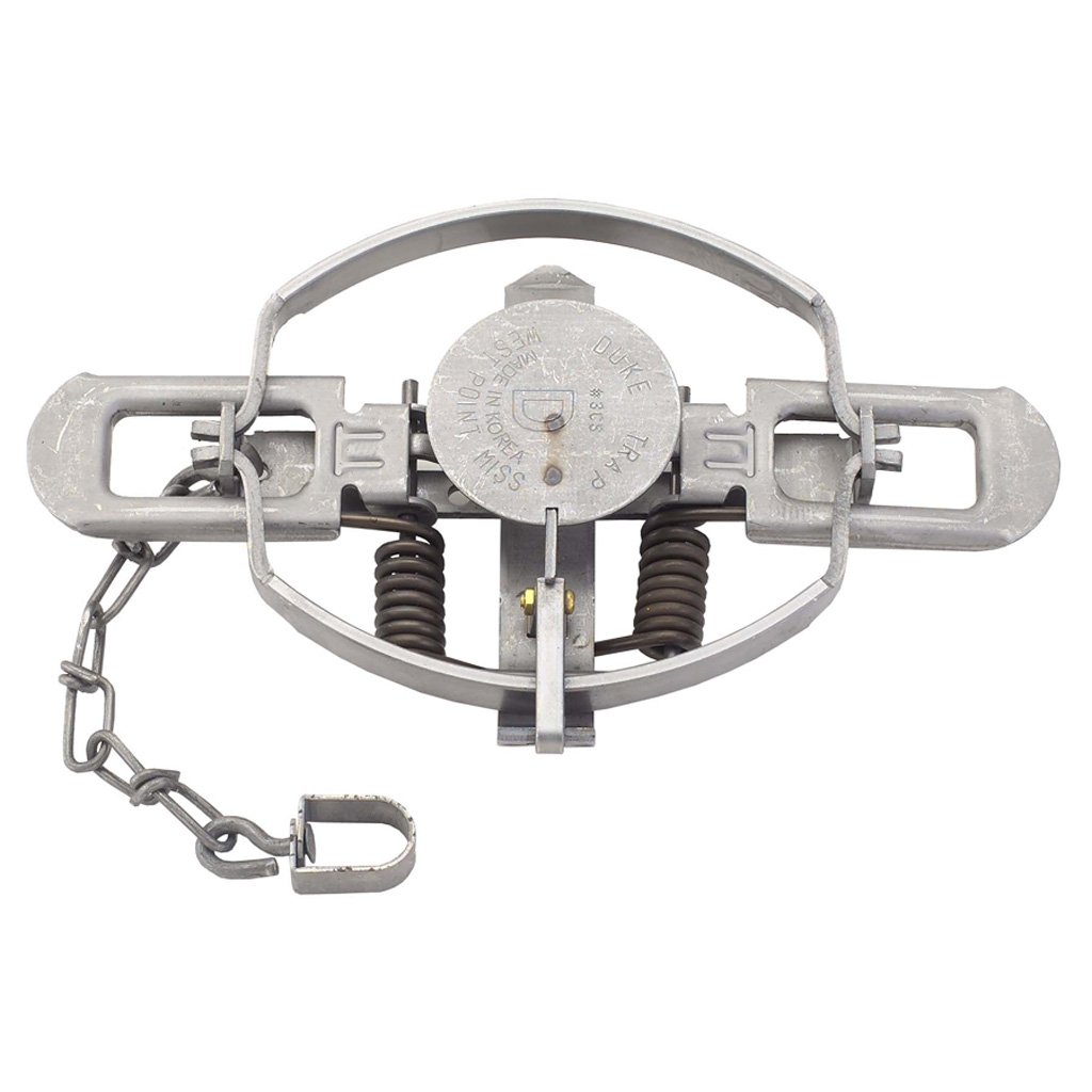 The 3 Duke Coil Spring Trap has a 6″ jaw spread, and is recommended for use in taking beaver, bobcat, coyote and lynx.