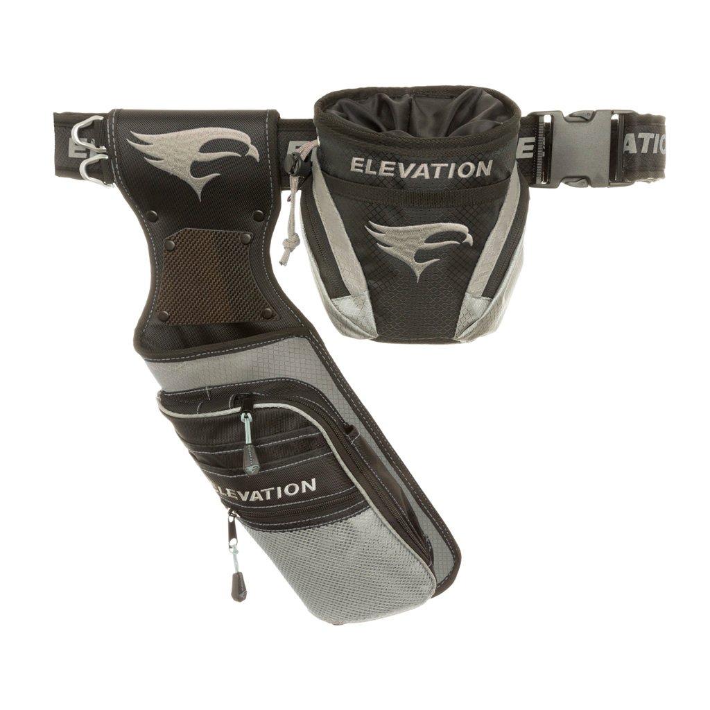 Package includes Nerve Field Quiver, Core Release Pouch, and Pro Quiver Belt. Field quiver featuring Diamond-Lock fabric and Comfort-Tec Pro padding. 3-Stage carbon tube arrow divider and carbon point plate provide added durability and performance. Large zippered storage compartment and secondary zippered mesh storage pockets have custom zippers and vented mesh outer compartments. Two accessory sleeves let the archer store their scorecard, pen, and kickstand. Release pouch made from Diamond-Lock Weave fabric with embroidered Elevation logo. Comfort-Tech Pro padding. Fits quiver belts up to 2” wide. Draw string closure and dual storage pockets will keep your gear secure. Soft, protective Micro-Raschel Fleece lining won’t damage the finish on your releases. Fully adjustable 2” wide quiver belt made from Diamond-Lock Weave fabric. Easily adjusts from 28”-46”. Includes heavy-duty belt clip.
