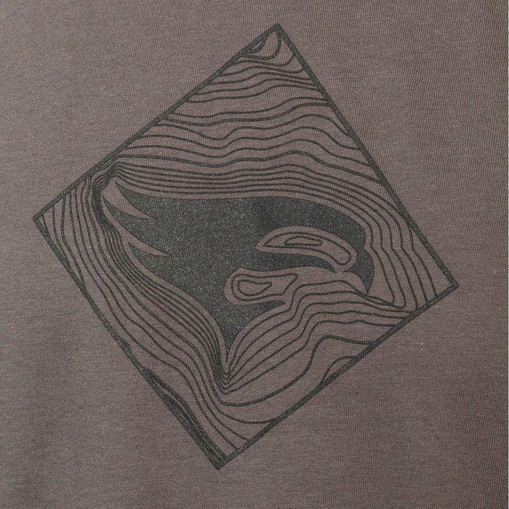 Elevation Topo Tee presents the Elevation peregrine falcon amidst a custom topographic map. The Tee is a CVC High quality fabric (60% Combed ring-spun cotton/ 40% polyester) and machine washable.