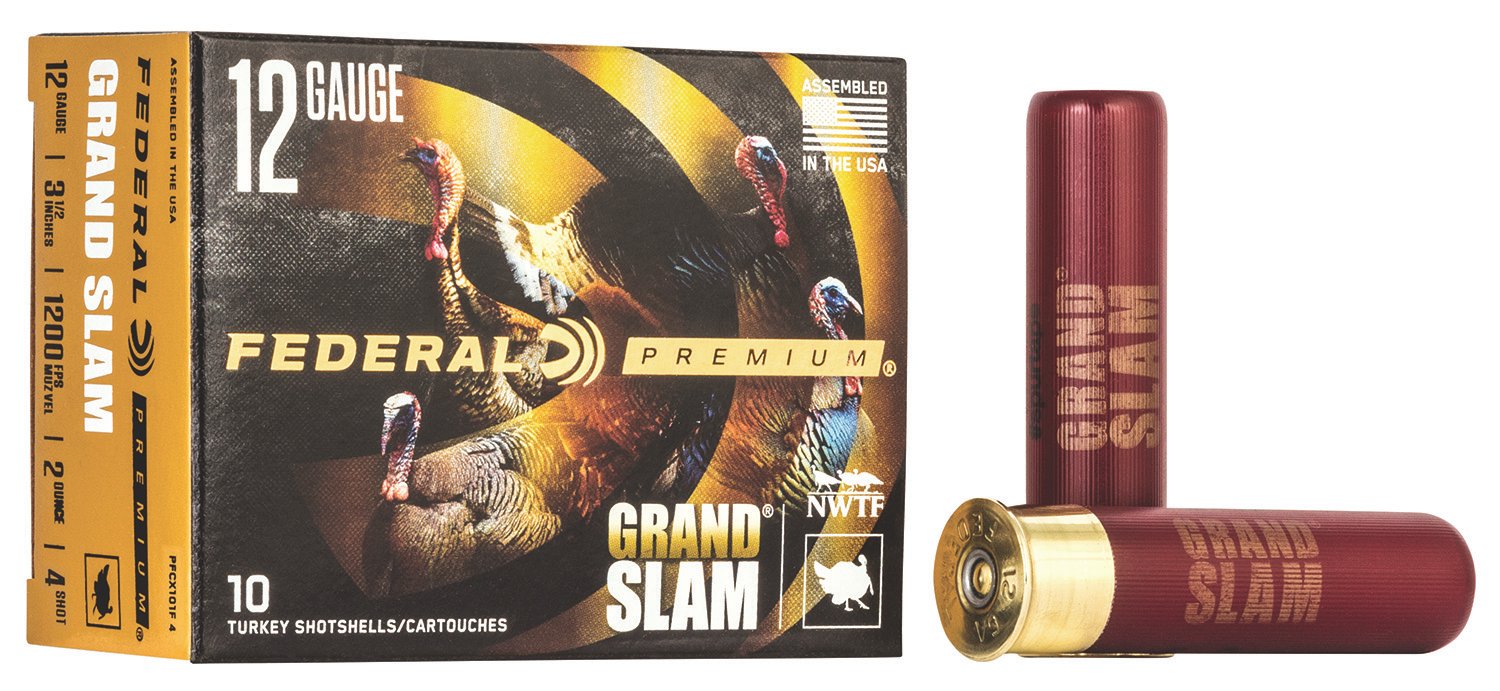 The Federal Premium loads start with the finest primers, which are subjected to more frequent inspections for dimensional tolerances and charge weight to ensure they deliver consistent ignition for every shot. Next is the propellants, which are specially formulated to meet Federal’s stringent specifications. These clean-burning powders are of the highest grades in the industry. They’re consistent and reliable.Extend the range and enhance the lethality of lead turkey payloads with Federal Premium Grand Slam. Its FLITECONTROL FLEX wad system works in both standard and ported turkey chokes, opening from the rear for a controlled release of the payload and extremely consistent patterns. The high-quality copper-plated lead pellets are cushioned with an advanced buffering compound to provide dense patterns and ample energy to crush gobblers.