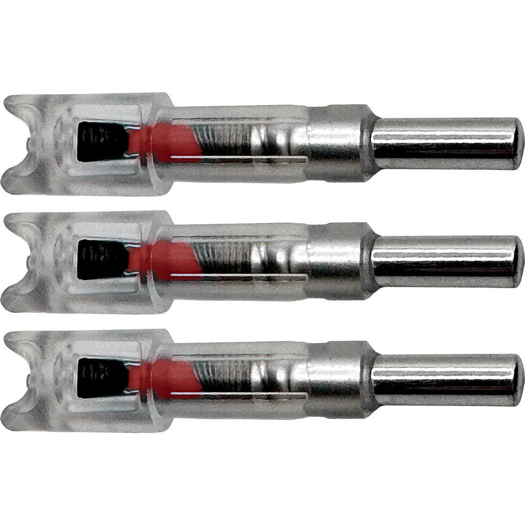 The LIT Lighted Arrow Nocks are designed to make tracking your arrow effortless. Each nock features an external on/off switch for easy activation without tools, and automatically lights up when the arrow is shot, making it visible both day and night. With a long-lasting battery that stays lit for up to 48 hours, these nocks come in a variety of colors and are a cost-effective way to preserve expensive arrows. Each pack contains three lighted nocks, weighing 16 grains each.