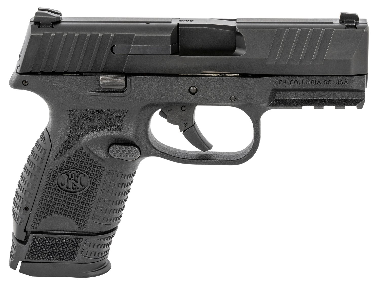 The FN 509 Compact represents the next evolution in personal protection with the performance of a full-sized pistol in a concealable size. With low-profile, snag-free sights, its the right addition for every day carry and the perfect fit for in-the-waist holsters. The improved controls aid in manipulation, the improved texturing on the two included backstraps provides better recoil management and a flat faced trigger enhances trigger control with a cleaner break. Includes Two interchangeable backstraps, two magazines, owners manual, locking device and soft pistol case.
