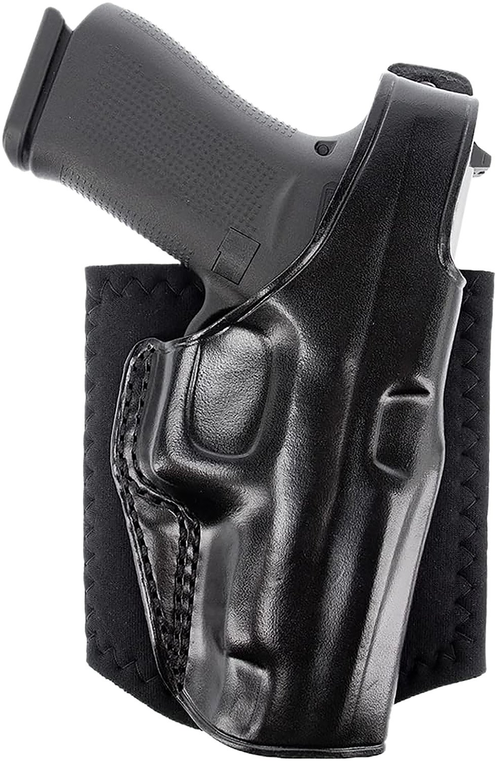 The Ankle Gloves wide neoprene ankle band and hook-and-loop closure offer extended wearing comfort and unmatched security. Additional comfort is provided by sheepskin padding between the holster and ankle. It also features a reinforced thumb break for speed of draw and detailed molding for firearm retention.