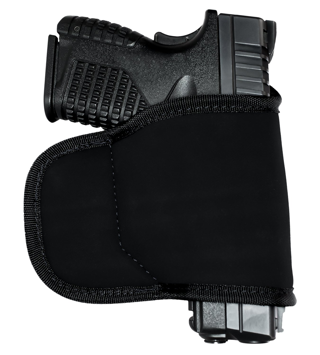 GrovTec’s Multi-Fit Holster has a Torsion grip retention that keeps pistol firmly in place and the slim profile belt slide is easy for concealment. Its multi-layer material conforms to body contour and eliminates printing. The raised inner section allows for easy re-holstering and protects clothing. Fits most small/med frame semi-auto pistols.