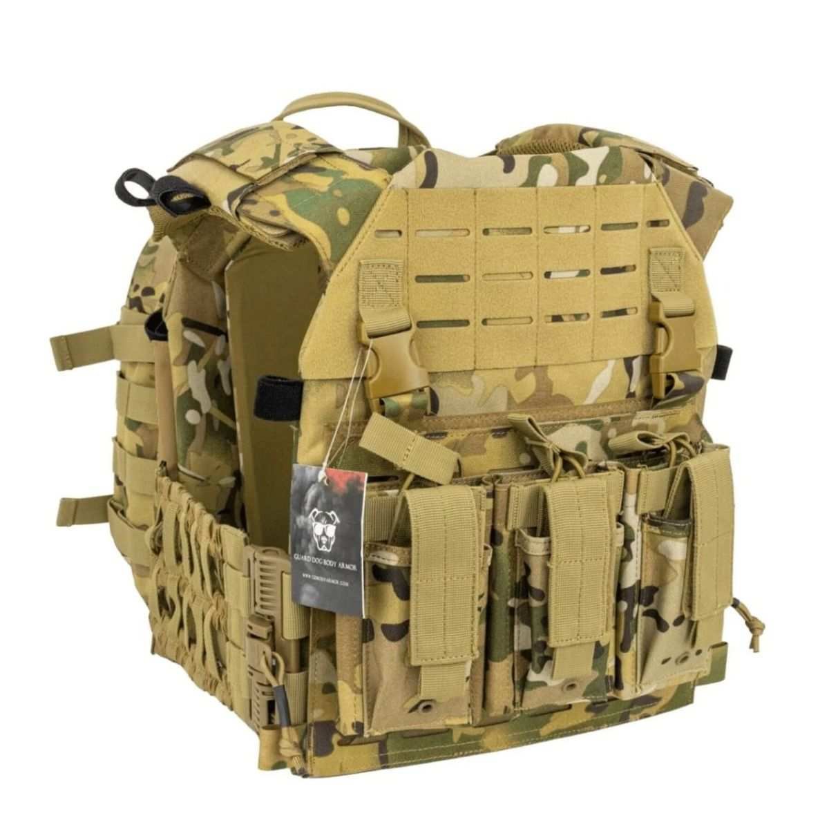 Guard Dog Body Armor’s CERBERUS-MC is a multi-functional and mission-adaptable plate carrier/ backpack combination. Made from highly durable 600D oxford fabric, what makes it stand out against other similar products is its detachable backpack which comes with a hydration bladder and hose. This allows the user to stay hydrated while outside for long periods of time. The backpack is attached by both Velcro and dual zippers, keeping it attached to the plate carrier. The front features dual, triple magazine pouches for AR15 5.56 Nato magazines and handgun magazines. Inside of the carrier are shoulder and back pads allowing for even distribution of weight on the wearer. Color is Green Camouflage.