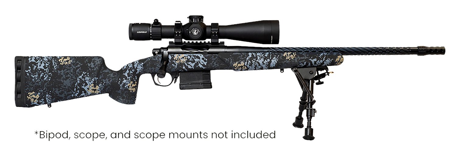 The Vandal Prime delivers a versatile long-range experience. Constructed with a texture-painted carbon iota EKO stock, it offers a sturdy foundation for precision shooting, whether on the range or in the field. Equipped with a TriggerTech trigger, a premium 416R stainless steel barrel featuring 3-flute, 2-twist banded spiral fluting and a Horizon Stiller action.
