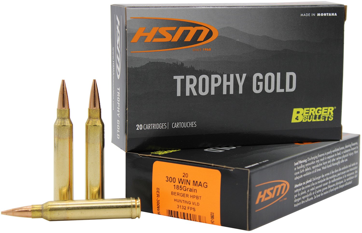 HSM 300WM185VLD Trophy Gold Extended Range 300 Win Mag 185 gr Berger Hunting VLD Match 20 Per Box/ 20 Case