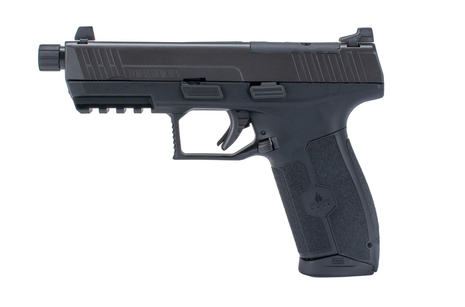 IWI MASADA 9mm polymer framed striker-fired pistol was developed in order to provide an advanced solution to the modern battlefield requirements. Much more than just another striker-fired pistol the MASADA features a low profile barrel for reduced perceived recoil. Fully ambidextrous controls and enhanced ergonomics which provide a natural and instinctive pointing grip angle. Three interchangeable wrap around back-straps coupled with the deep beavertail enabling the MASADA pistol to fit a wide variety of hand sizes.