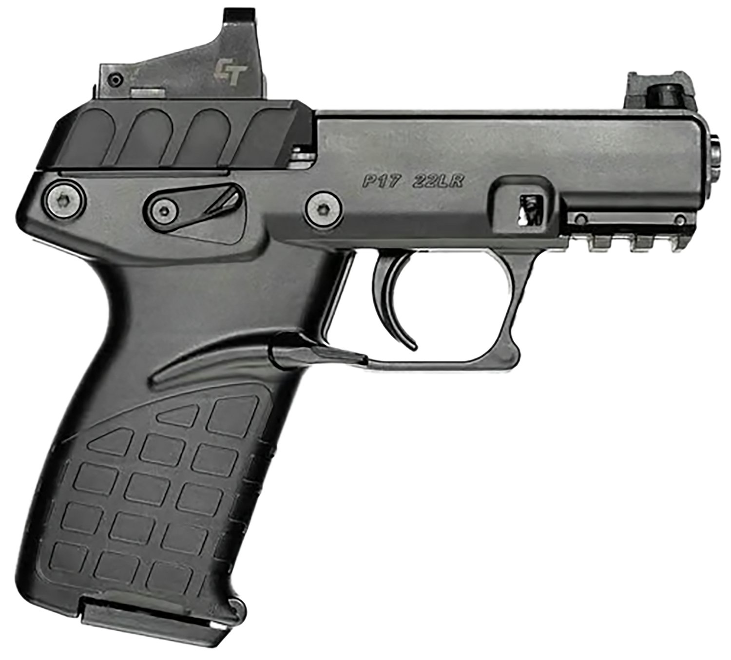 Kel-Tec P17BBLKRD P17 w/Optic Bundle Compact Frame 22 LR 16+1 3.80″ Black Steel Barrel, Black Serrated Slide, Black Polymer Frame w/Picatinny Rail, Textured Grip, Crimson Trace Red Dot, Ambidextrous