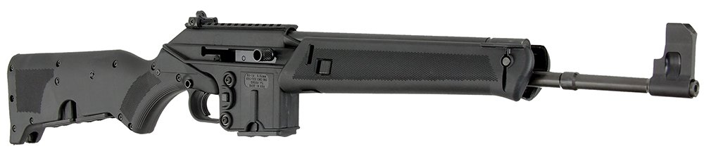The SU-16A is a gas operated, semi-auto loading rifle chambered in 5.56 mm NATO caliber. It is intended to be the perfect everyman’s sport and utility rifle. It has a 1:9″ RH twist. Several features make the SU-16 a versatile sporting firearm, including a chrome-lined bore and chamber and integrated Picatinny rail for mounting different sight systems. The forend folds down to form a bipod for increased accuracy, the stock can store spare magazines, two 10-round magazines or one 20/30 round magazine will fit and the stock and trigger mechanism can be folded forward for added safety and to facilitate secure storage or carry under extreme conditions. Except for barrel and operating components, the SU-16 is made entirely of high impact reinforced polymer. The SU-16B “Bravo” model retains all the features of the original SU-16, such as integrated bipod, Picatinny rail, and rotating stock with magazine storage. The “Bravo” model has a lighter and shorter barrel (by about 8 oz. and 2.3″), but still has a chrome-lined bore and chamber. The SU-16C “Charlie” model retains most features of the original SU-16, such as integrated bipod, Picatinny rail, and AR-15/M-16 magazine compatibility. The front sight is integrated into the gas block and uses an AR-15/M-16 style front sight post for elevation adjustments. The SU-16C has a true folding stock and can be fired with the stock folded. A reciprocating dust cover and a case deflecting operating handle are also integrated into the rifle. The medium weight barrel is 16″ long and is threaded 1/2×28 TPI at the muzzle. It has a chrome-lined bore and chamber. The “Charlie” has a Parkerized finish with black polymer components. The SU-16CA is a hybrid of the SU-16C and SU-16A rifles. It comes with the same 16-inch barrel with chrome-lined bore and chamber and 1/2-28 threads as the C model. All features from the C model are retained and combined with the stock of the A model. The SU-16CA comes with two 10-round magazines that store in the stock and all the same Parkerized parts as the C model. Like the A model, the SU-16CA can be folded for storage, and it will not fire in the folded position. This allows for it to be purchased in most states that still have an “Assault Weapons Ban.”