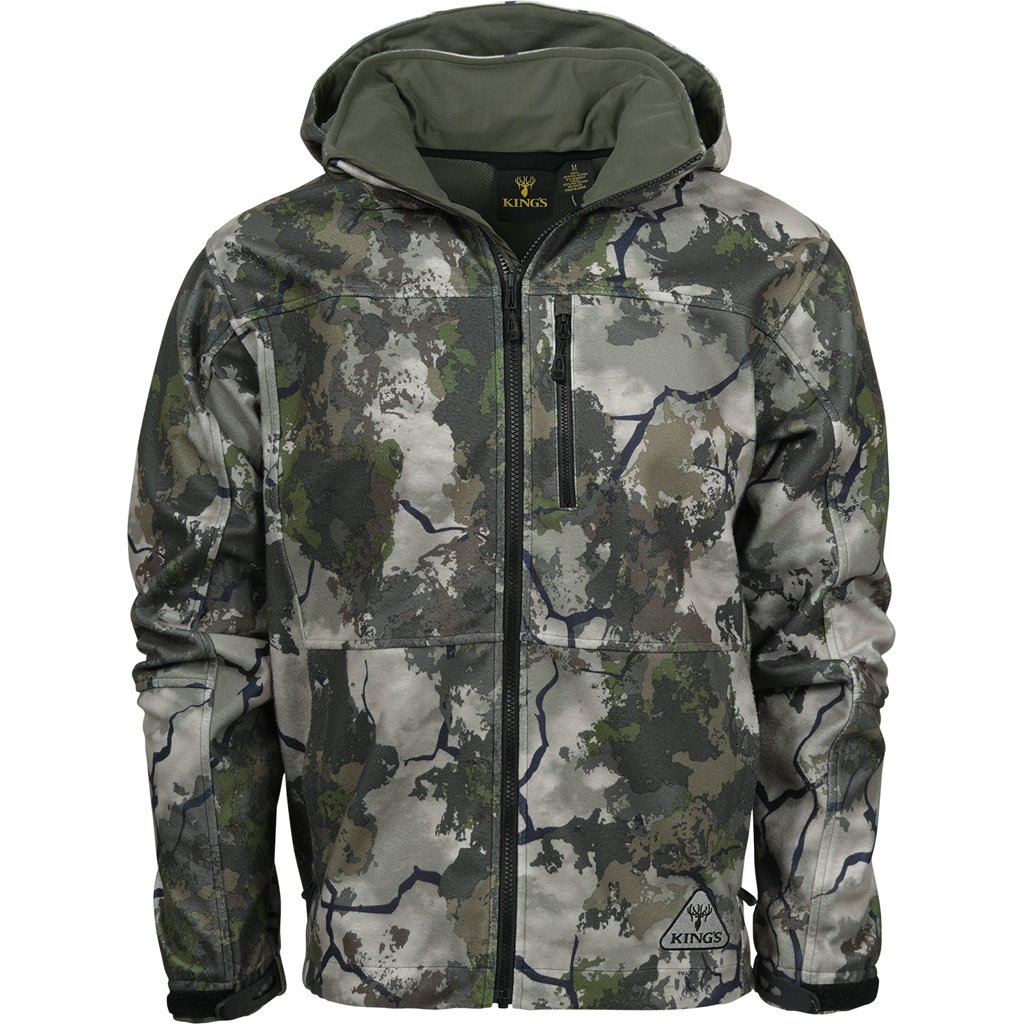 All-around hunting jacket built for protection against wind and moisture. Soft, quiet, quick-dry fleece with protection from the elements. Detachable hood, two side zip pockets, zip chest pocket, zipper tabs and drawstring tabs at the bottom and mesh liner. Includes a waterproof membrane, but seams are not taped or 100% sealed.