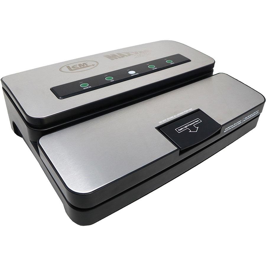 Seal up 250+ times without stopping! The MaxVac 250 is the latest addition to the LEM MaxVac family. This industrial grade vacuum sealer will extend the freshness and freezer life of your favorite foods. Protect your meat game fish vegetables or fruit from freezer burn and seal in the nutrients. Removes air and automatically seals for an amazing storage solution. The stainless steel construction is countertop friendly and built to last. Save money by customizing your bag size with the integrated roll holder and cutter. The 1-handed locking lid makes it easy to use. Includes auto and manual functions that will allow you to control the vacuum time and keep delicate items from getting crushed. Detachable cord. As a bonus an 8" x 10' roll of bag material is included. Compatible with most national brand vacuum bags. 1-year warranty. Lifetime customer service. ETL certified.