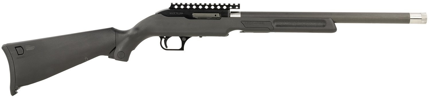 SwitchBolt receiver, 16.50″ carbon barrel w/threaded muzzle, w/Archangel black folding Backpack stock.