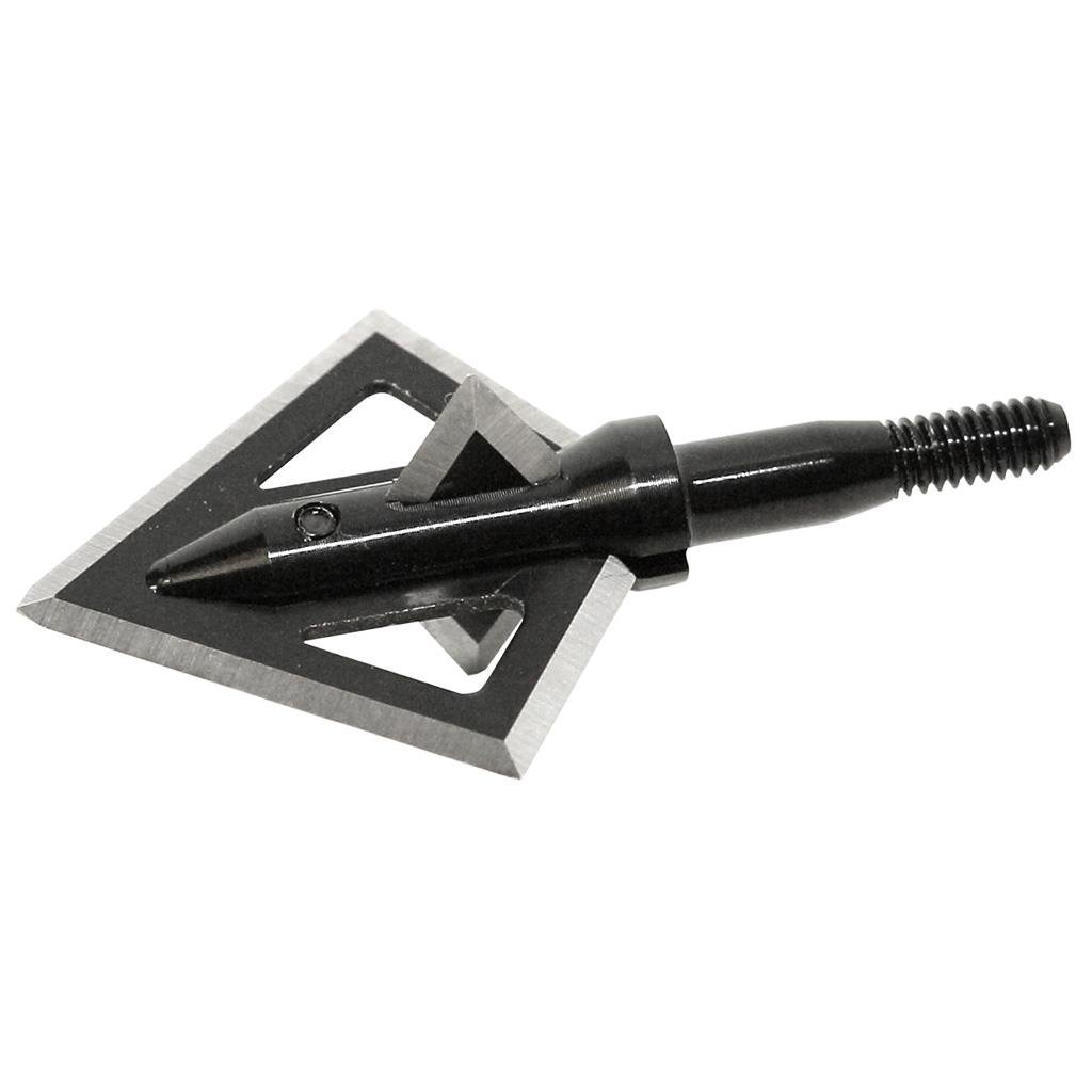 Four blade, fixed blade cut on contact broadhead that features a 1 ¼” cutting diameter on the main blade and a 7/8” cutting diameter on the bleeder blade. Main blade features a thickness of .059 thousands of an inch and the bleeder blade features a .040 thousands of an inch thickness. Made of knife grade stainless steel with a patented diamond tip.