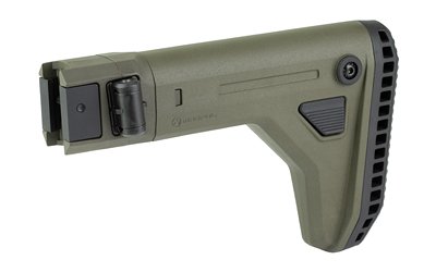 The Magpul UCS (Universal Carbine Stock) is designed to be the ideal supplement to the vast array of firearms utilizing a vertical M1913 Picatinny rail on the rear of the receiver for stock fitment. To accommodate the wide variety of charging handles styles, ejection port locations, and control locations, the UCS features a reversible hinge for left and right folding configurations, and five degrees of drop for clearance.
