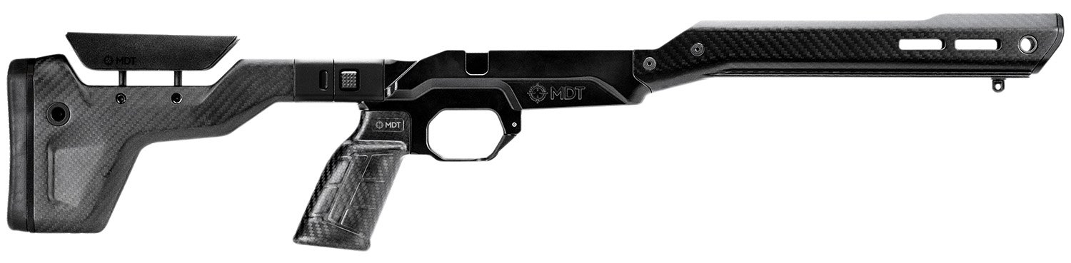 MDT Chassis Systems were designed for sports and tactical shooting. However over the years we found that our rifle chassis were often used in hunting, especially our lighter chassis such as our LSS Chassis system. But we had never purpose-built a chassis system solely for hunting, until now.. The MDT HNT26 Chassis System is our first truly purpose built hunting rifle chassis. This rifle stock provides you with all of the usual benefits that you expect from a chassis system such as v-block bedding, LOP and comb adjustment, AICS magazine compatibility etc, but weighs in starting at a mere 26oz. The MDT HNT26 Chassis is constructed of a magnesium alloy rifle stock/base, with a carbon fiber forend, a carbon fiber pistol grip and a foam filled carbon fiber buttstock. This model has the ARCA forend.