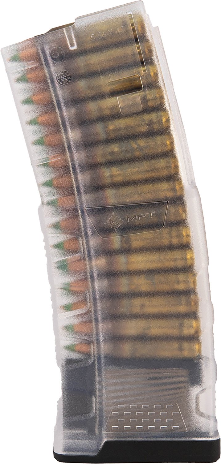 MFT Translucent EXD Magazine Clear visual confirmation of round count and ammo type, textured to eliminate shine. Next-generation AR15/M4 magazine that utilizes new material technology and manufacturing processes for enhanced strength, durability, and reliability. Made from military-grade copolymer, resistant to heat, cold, UV, harsh chemicals, and drop impact, even in extreme temperatures.