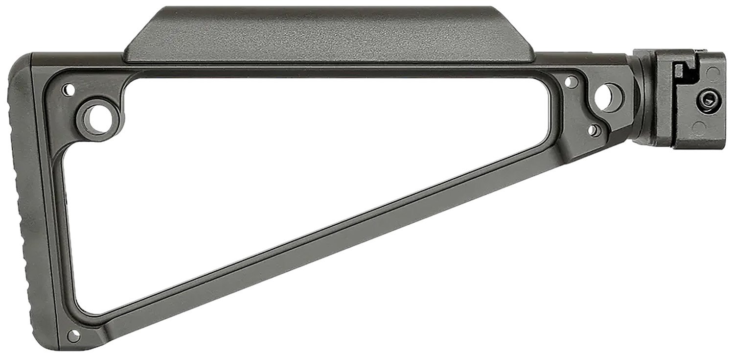 Heavy-duty side-folding mechanism constructed from 4140 heat treated steel. Full-length locking lug for maximum strength. Solid positive lock up in both positions, steel clamp with large surface engagement. Features 5 QD sling attachments. Stock is made from Hard Coat Anodized 6061 Aluminum. Cheek piece and butt pad made by Midwest Industries, polymer cheek piece and rubber butt pad for better comfort. Adds 9.25 to overall firearm length, adds 0.75 to the length of the firearm in the folded position. Steel parts are mag phosphate finished
