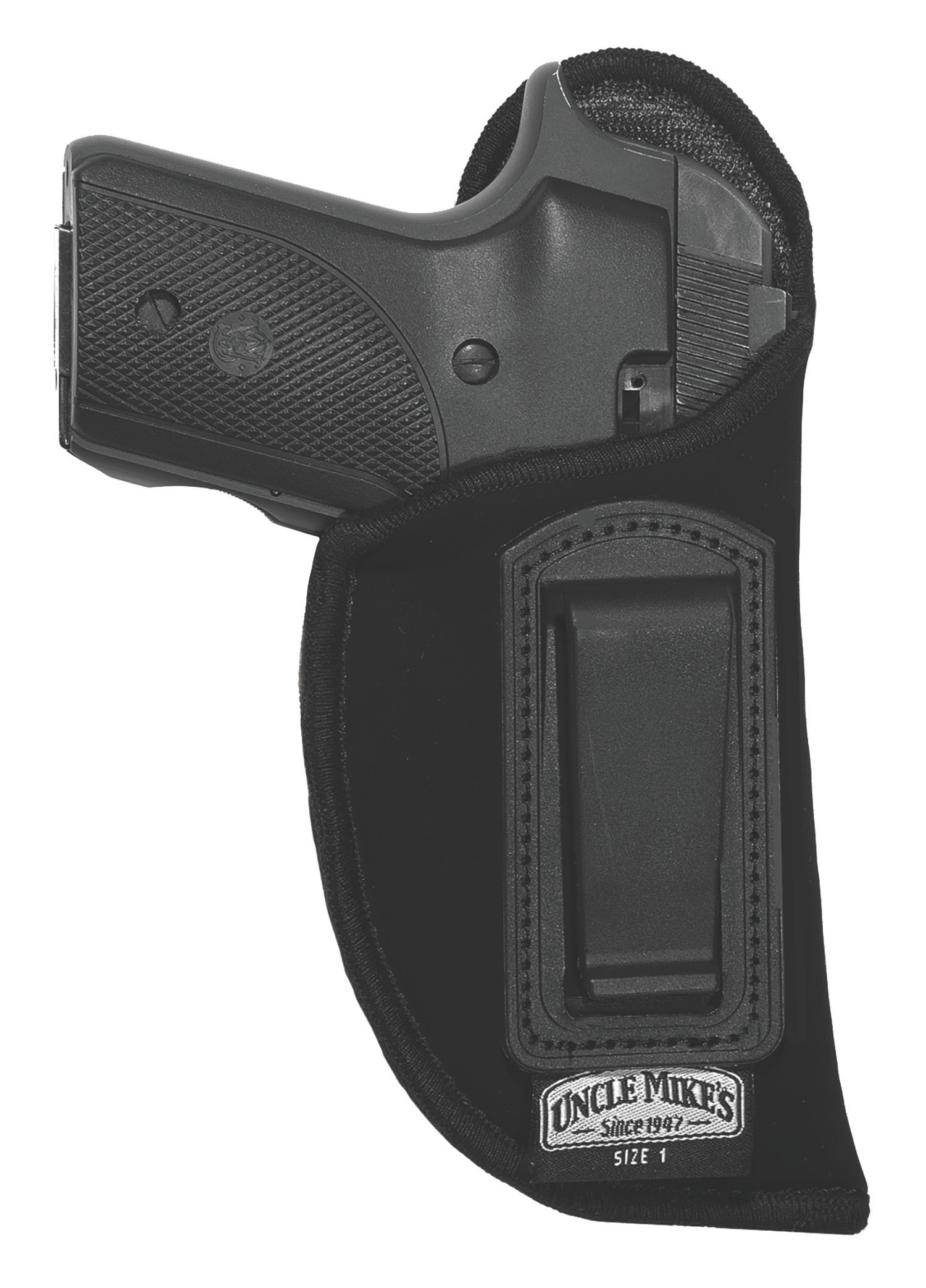 Uncle Mikes Inside the Pants Open Style Holster has ultra-thin four layer laminate no thicker than conventional suede leather holsters. The internal moisture barrier will not transmit perspiration to gun. Fits medium auto.