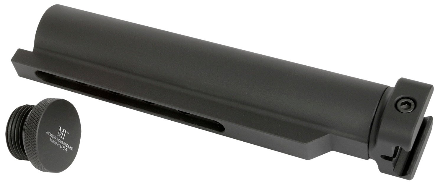 The Stock Tube Adaptor installs on your Mil-Spec diameter stock tube to receivers with Picatinny rails. Featuring a 6-position tube with a compact design and an easily accessible water proof storage in the tube. Made in the USA.