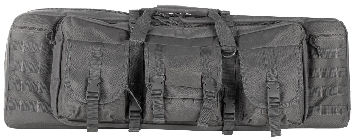 NcStar CVDC2946U36 VISM Double Carbine Case Urban Gray PVC Nylon w/ Foam Padding Lockable Zippers Pockets & MOLLE Webbing