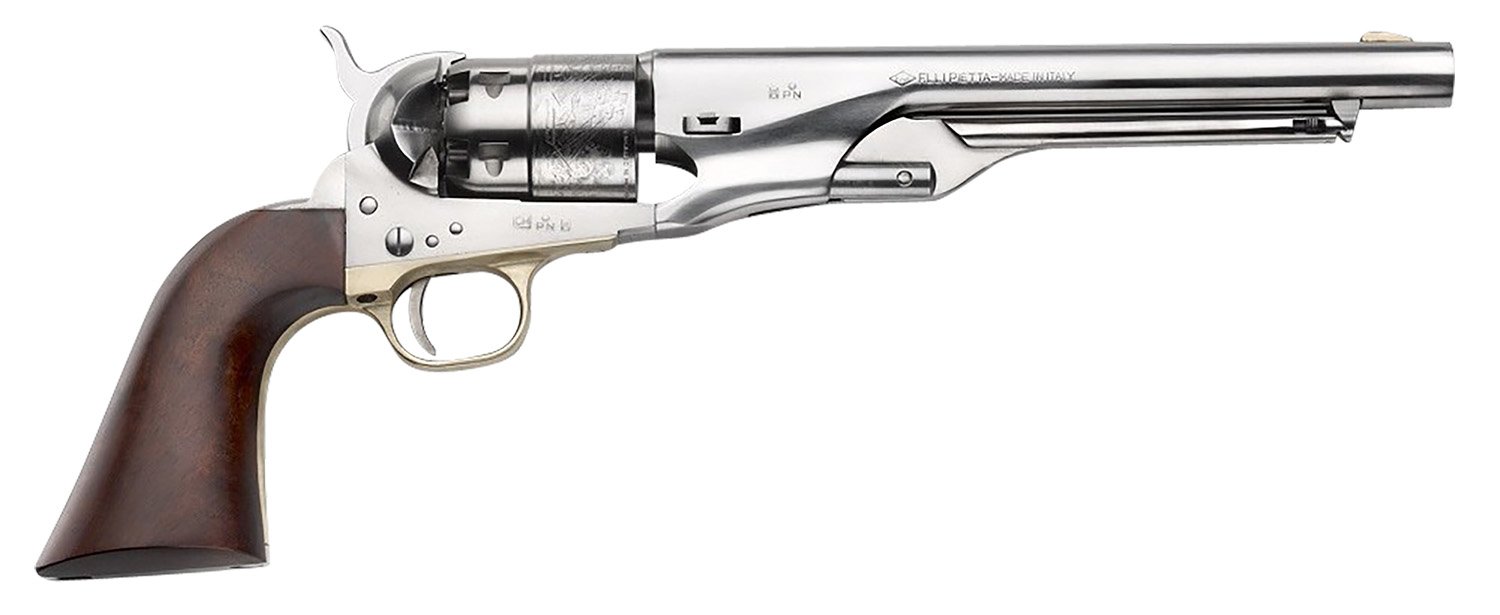 Pietta PF60OS448 1860 Army “Old Silver” 44 Cal 8″ 6rd Old Silver Steel Frame, Cylinder & Round Barrel w/Walnut Grip