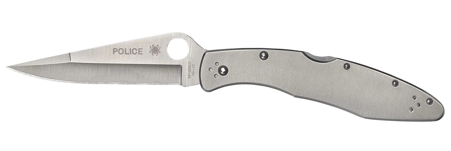 The Police model has been the choice of Law Enforcement officers everywhere. It was designed with a lot of cutting power in a slim comfortable handle. The blade is hollow ground VG-10 steel with a weight reducing swedge at the tip, and the David Boye dent in the locking lever allows for a tight grip without accidentally releasing the lock.