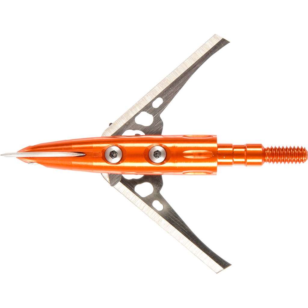Newly incorporated Rage NC (No Collar) technology integrated blade containment system utilizes cutting-edge finger-like tabs on the blades’ pivot point to “anchor” the blades in place while in the closed position. This technology completely eliminates the need for a Shock Collar, dental band or O-ring, while still providing a 100% reliable blade retention system. Each 2-blade version incorporates premium-grade aluminum ferrules and ultra-tough .035” thick and razor-sharp stainless-steel blades for exceptional performance on game animals of all sizes.