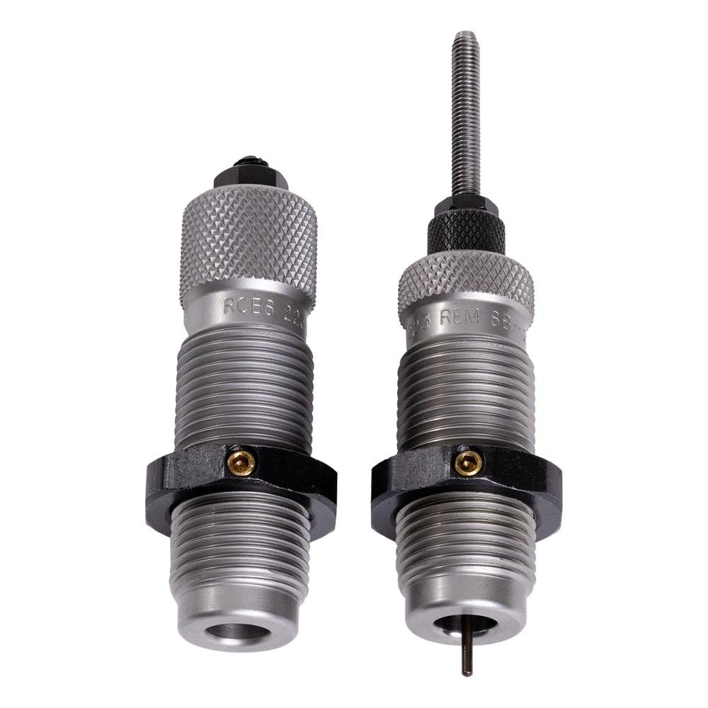 This two-die set is for bottleneck type cases used in tight-chambering semi-automatic pump or lever-action rifles. It consists of a Small Base Sizer with an Expander-Decapping Unit and Regular Seater Die with Seater Plug. The sizer resizes cases below SAAMI minimums reducing the shoulder and body by a few thousandths. It also de-primes the case. The included Seater Die has a built-in roll crimper to secure the bullet at the same time it