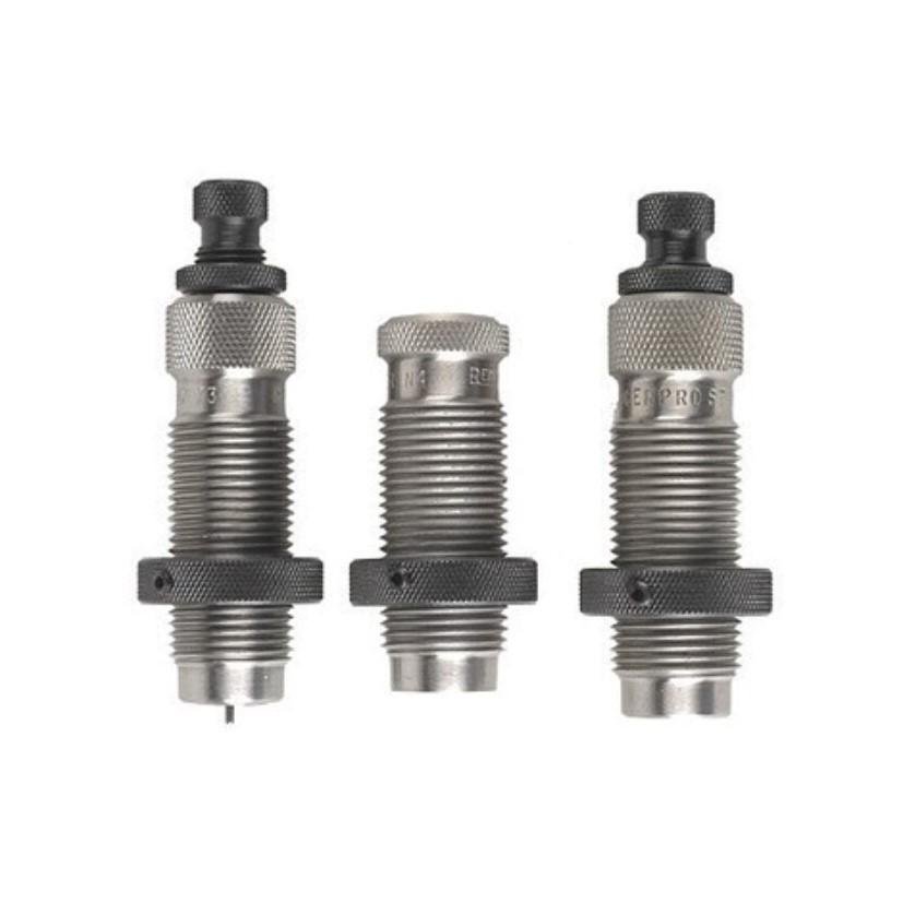The Redding Pro Series Die Set (designed for progressive machines) includes the NxGEN carbide sizing die (NX-C) but does not include an expander die (EXP) because most popular progressive machines expand the case mouth at the powder drop station. A special seating die (PRO ST) is supplied with a large entry radius but does not provide bullet crimping ability. This set is also supplied with a specialized bullet crimping die (CR).