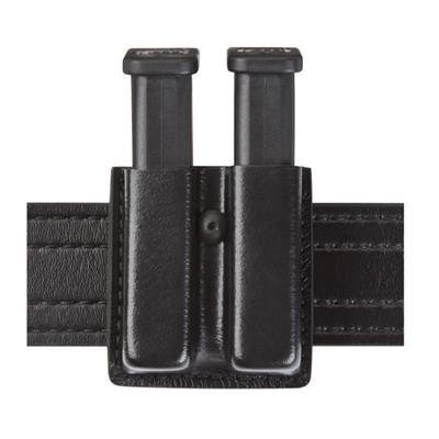 The Model 79 Slimline Open-Top Double Magazine Pouch is designed to carry two magazines vertically on a 2.25" (58mm) duty belt. The magazines are oriented face out to save space on the belt. It's constructed of rugged SafariLaminate and is available in several scuff-resistant finishes with four different closures.