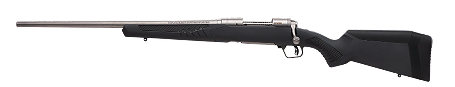 Savage’s 110 Storm model delivers a customized fit required for consistent accuracy. It features Savage’s AccuFit synthetic stock with five comb riser sizes for the perfect cheek-to-stock weld, four composite inserts to establish your unique length-of-pull, and AccuStock. The AccuStock consists of a rigid rail system firmly embedded in the stock throughout the forend of the rifle. It also engages the action three dimensionally along its entire length. The 110 Storm also features AccuTrigger for flexibility, a stainless steel barrel with button-rifling, soft grip fore-end and pistol grip, a drilled and tapped receiver, and a detachable box magazine. This left handed 6.5 Creedmoor model has a 22″ stainless steel barrel and a gray finish stock.