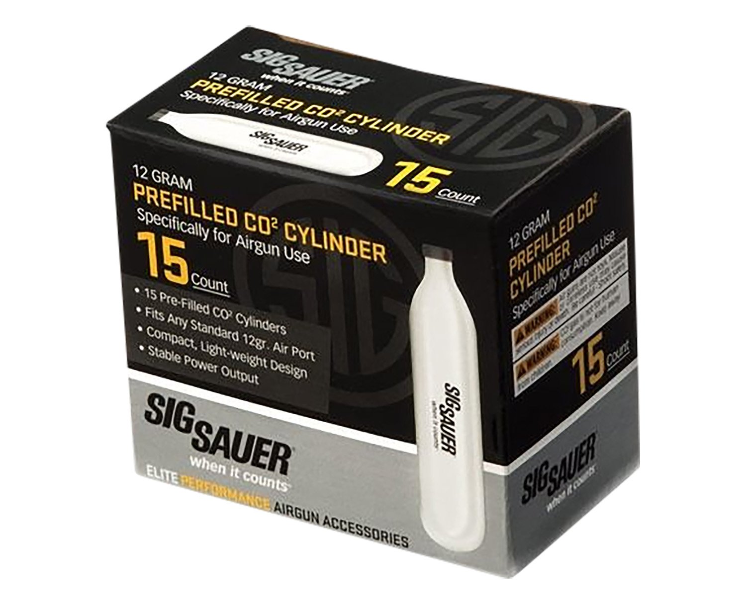 Sig Sauer Airguns prefilled CO2 cylinders has a compact, lightweight design and stable power output. This model comes in a pack of 15 and is compatible with 12gr air port.