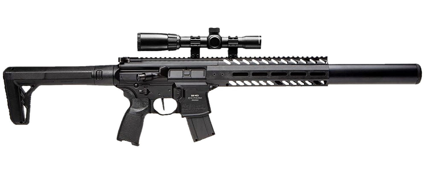 Created from the same robust foundation as its predecessor, the SIG MCX GEN II Air Rifle has been updated with improved accuracy and modified furniture and controls. Featuring an M-LOK system handguard, flat blade trigger, reduced angle grip, a redesigned buttstock, and a low-profile recoil pad. Chambered in .177 pellet and complete with a rifled barrel and flip-up sights, the CO2-powered SIG MCX GEN II Air Rifle keeps you on target while delivering 30 rounds of semi-automatic firepower down range. FEATURES: 1-4x24mm Scope. Ambidextrous manual safety levers. Quick detach buttstock houses 88g or 90g CO2 cartridges.