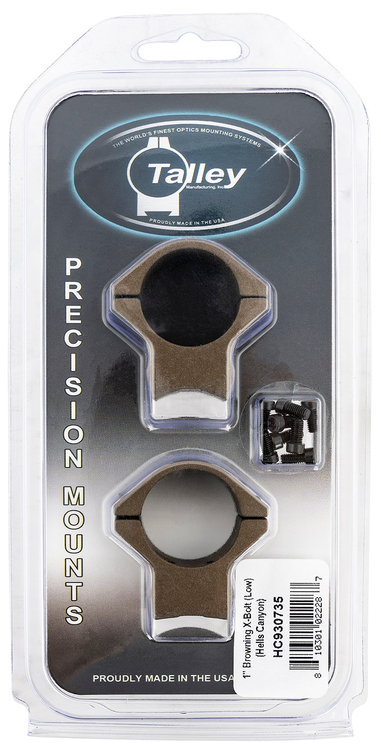 Made in America, these Browning X-Bolt Scope Mounts made by Talley Manufacturing offer a unique and simplified one-piece scope ring and base solution for Browning X-Bolt rifles. This simplified mounting system eliminates the possibility of an out of alignment interface or loose connection between the ring and base of traditional two-piece designs. Ultimately this provides more strength and durability than rival steel rings and bases, but with a lighter overall weight. Fully CNC machined from lightweight aircraft-grade aluminum to the industries tightest tolerances, this rigid scope mounting platform requires no lapping and is ready to go out of the box.